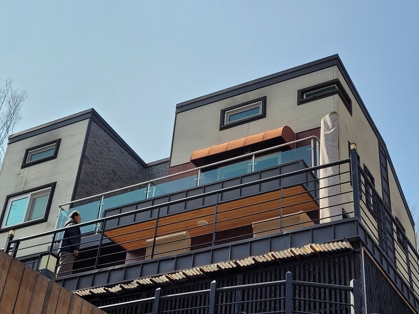 오픈을 앞두고 매장입구에 설치한 고정식어닝